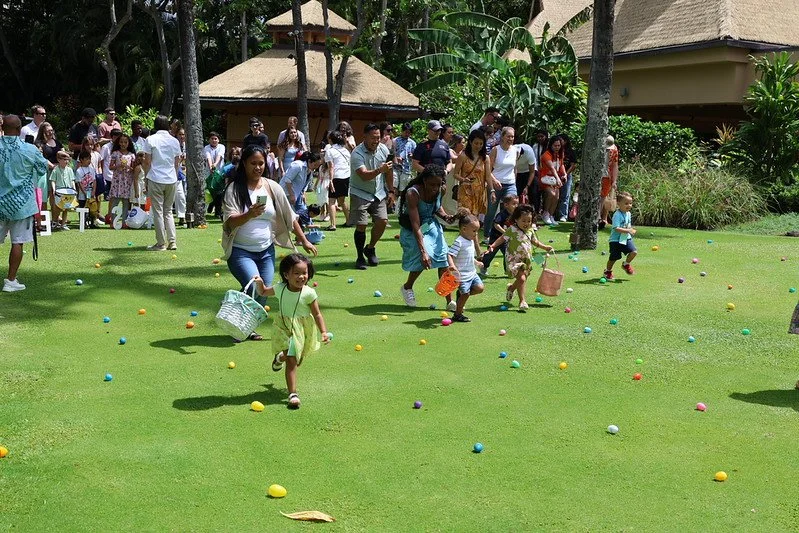 Hundreds of children descended on the Hale Koa Hotel’s luau garden to seek out the thousands of eggs that were “hidden.” This is always the highlight of the annual event, after a lavish buffet brunch, the Easter Bunny, games and lots of door prizes. Some of the wee ones found Golden Eggs, which gave them even more prizes! And a huge mahalo to the ‘Iolani School’s Raiders for Wounded Warriors and their advisors for coordinating the event!
