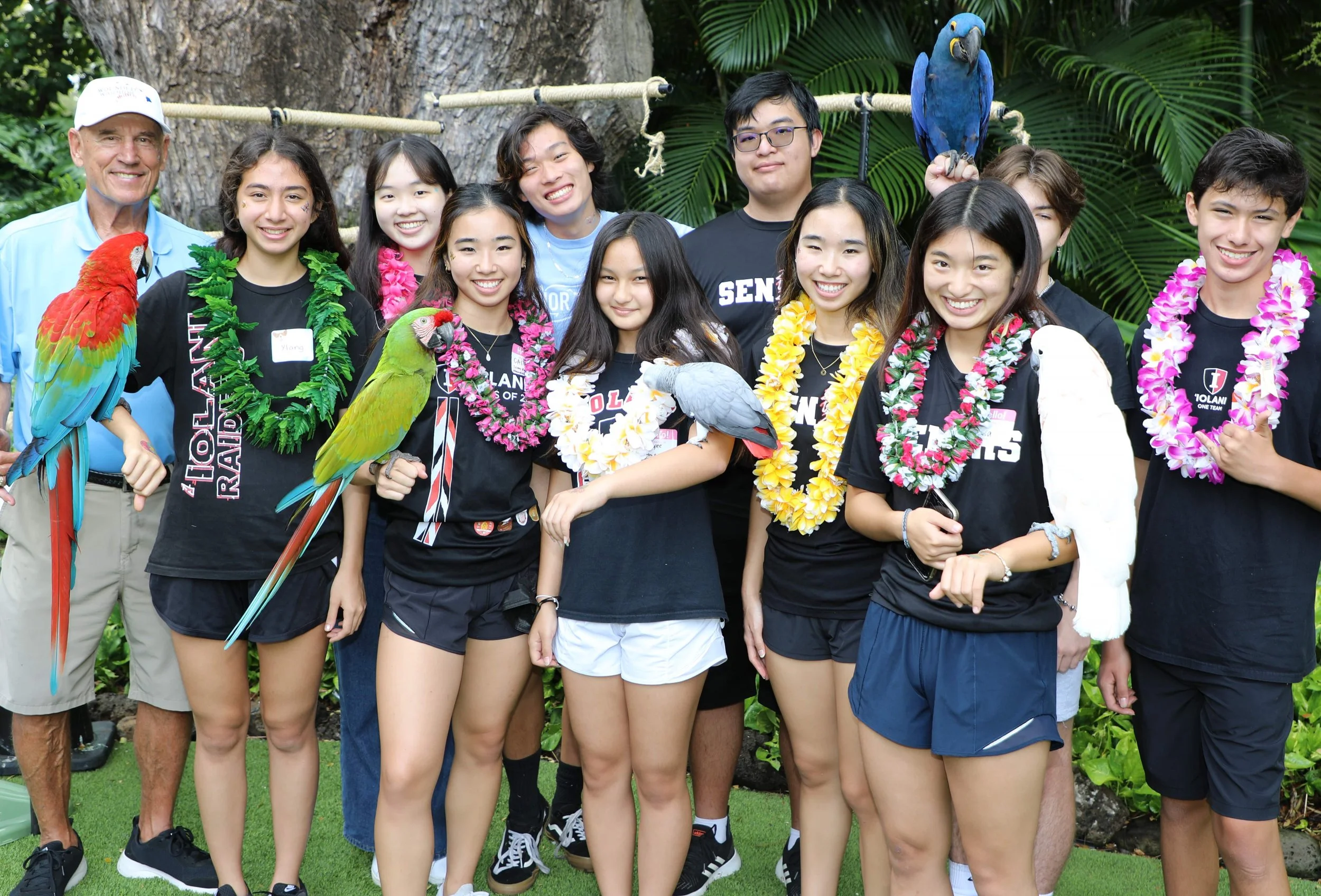 WWO President Dick Rankin and the ‘Iolani Raiders for Wounded Warriors with some feathered friends.