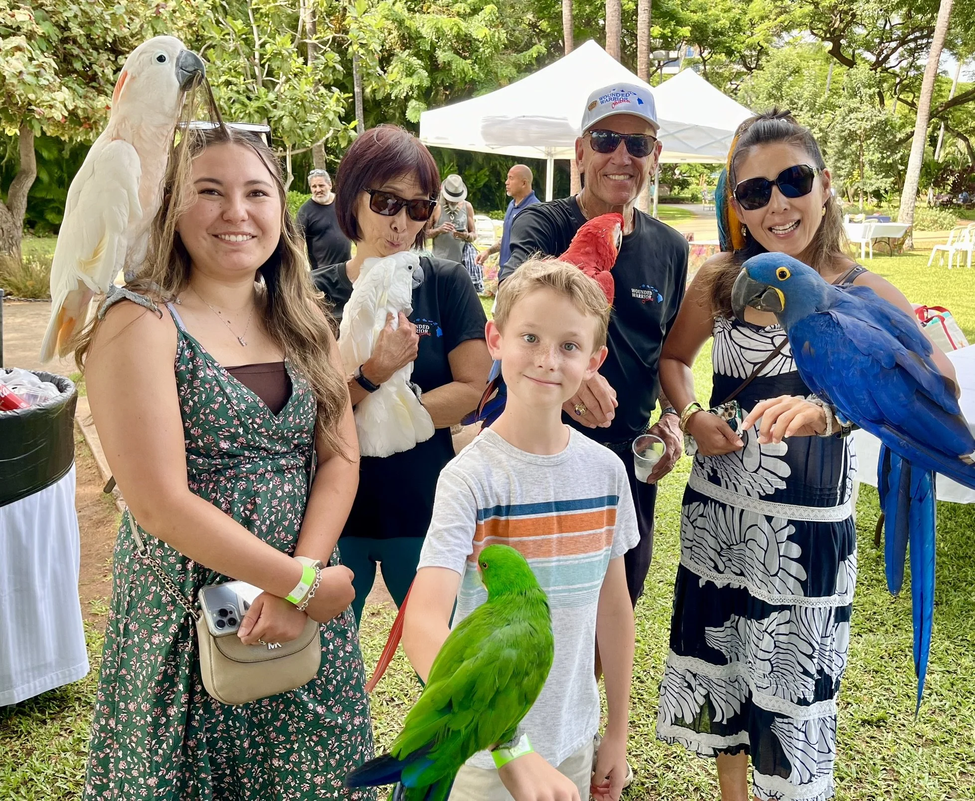 What could be more exciting and fun than hanging with some wacky birds, eating a scrumptious lunch and then setting sail on the Holokai Catamaran! Our wounded warriors had a blast out on the beautiful Pacific, sailing along the shores of Waikiki! Mahalo for the folks at Holokai for providing the rides and to our many donors of door prizes, including Cookie Corner for the delicious cookies and Marge Awana for the lovely hand crocheted afghans! And mahalo to Hale Koa Hotel for setting up the buffet and serving the most delicious hamburgers we’ve ever tasted!