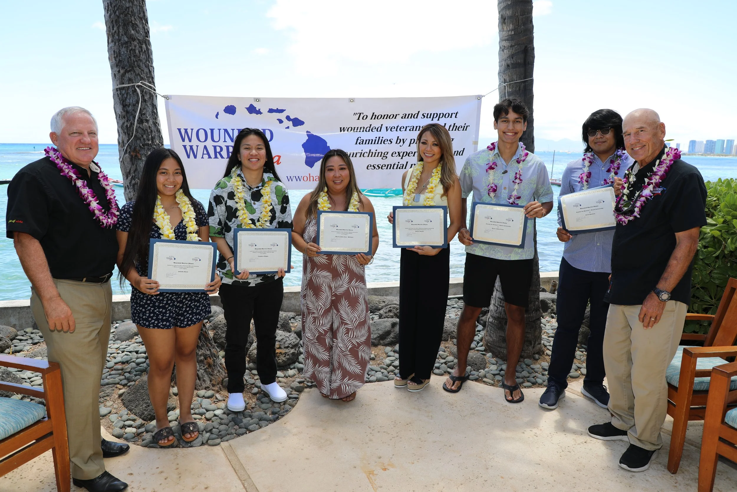 The Wounded Warrior Scholarship Presentation Luncheon was coordinated by WWO Board Member Matt McCarville with the generous support of the Outrigger Canoe Club and many program sponsors.